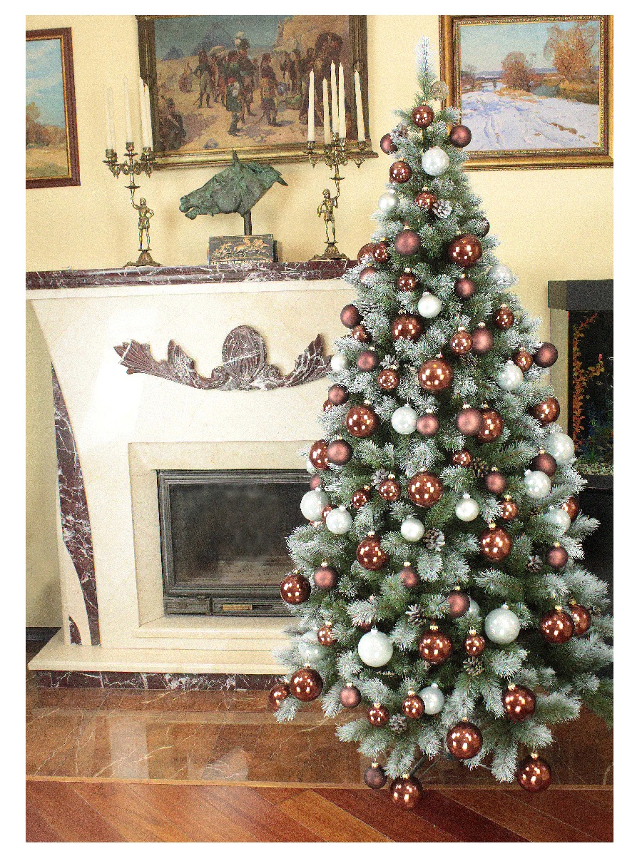 Это пышная ель с искрящимися иголочками. У этой ели пушистые ветки, нежно-зеленая крона со стройным классическим силуэтом. Кончики нежно-зеленой хвои припорошены едва заметным серебристым инеем, который придает облику новогоднего дерева эффект инея на ветвях и зимнее очарование. Благодаря посеребренным кончикам веток крона ели как будто высвечивается изнутри. Дерево выглядит очень нарядно. Эта элитная модель искусственной ели удовлетворит самый взыскательный вкус и украсит любое новогоднее торжество. Ель имеет шарнирное крепление веток, чтобы ее собрать достаточно просто отогнуть ветки. Поставляется в коробках из плотного картона, предполагающих многолетнее хранение. Ветви после хранения не теряют форму. Искусственная ель - прекрасный вариант для оформления вашего интерьера к Новому году. Такие деревья абсолютно безопасны, удобны в сборке и не занимают много места при хранении. Вес в упаковке (кг): 13,1. Габариты в упаковке (ДхШхВ, см): 120х40х30.