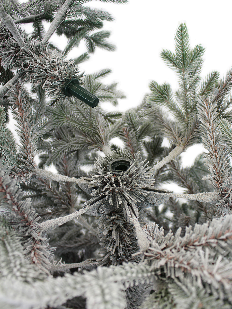 Ель Амалия Заснеженная это прекрасное решение для создания праздничной атмосферы в вашем доме. Очаровательная красавица, которая выделяется своим стройным внешним видом среди других моделей. Много мелких пушистых побегов придают ели реалистичный и естественный вид. Каждая веточка тщательно укутана 'снегом' - визуально не отличить от живого деревца из настоящего зимнего леса, но вот крона смотрится гораздо гуще, за счёт веточек с мягкой хвоей ПВХ в приствольном пространстве! Благодаря шарнирной системе крепления веток, установка и разборка ёлки становятся простыми и удобными. Искусственная ель - прекрасный вариант для оформления вашего интерьера к Новому году.