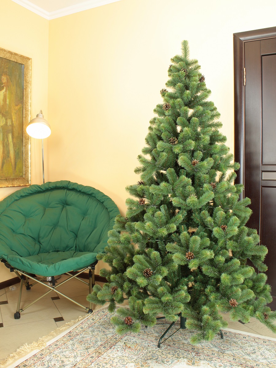 Ель искусственная Лесная Красавица зеленая с шишками и инеем 1,85 м