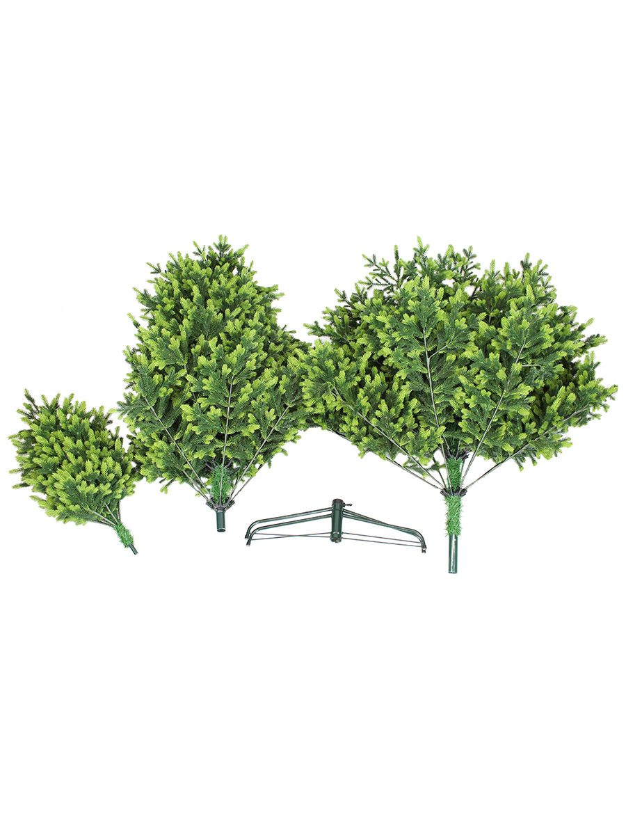 Новогодняя красавица очень похожа на живое дерево. Это обеспечивается за счет литых веточек, точно повторяющих форму натуральной хвои. Также натуральности дереву придает не однотонная расцветка – зеленый цвет переходит в салатовый ближе к краям веточек и имитирует молодые побеги хвои. Ветки лесной красавицы, изготовленные методом литья, не только с точностью повторяют натуральную хвою, но и обеспечивают продолжительный срок службы ели. Иголки очень прочные, надежно держатся на ветках и способны выдержать новогодние украшения любого веса. Рождественская елка изготовлена из качественных, современных искусственных материалов. Они обладают экологической чистотой, безвредны для человека, не имеют запаха, а также обладают высокой степенью пожарной безопасности. Конструкция Ель искусственная литая Андромеда, представлена в виде шарнирной системы. Такой способ крепления веток позволяет очень быстро разбирать и собирать елку. Металлическая подставка обеспечивает надежное крепление дерева и строго вертикальное положен