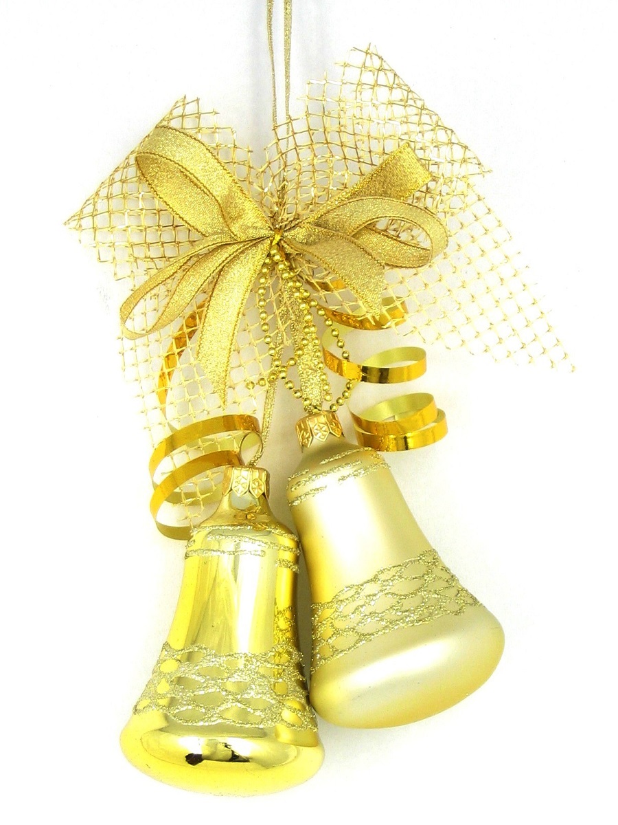 Набор из двух стеклянных колокольчиков с ручной росписью, украшенный лентами.