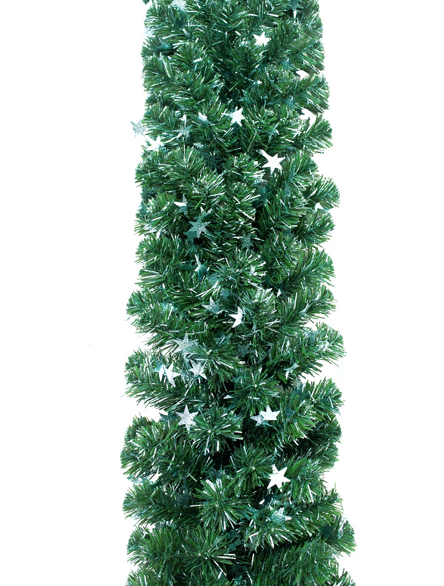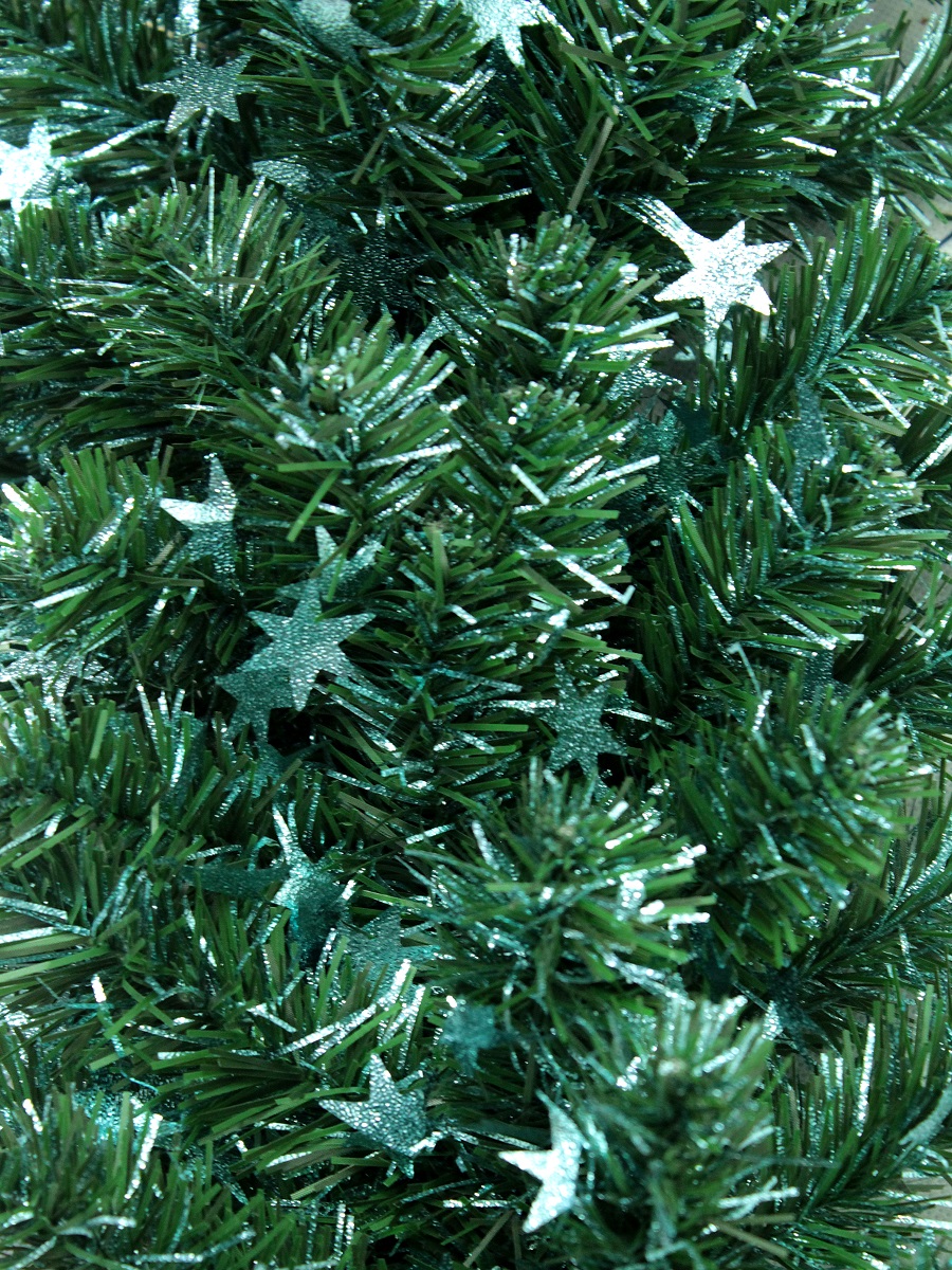 Густая хвойная гирлянда зеленого насыщенного цвета с короткими пушистыми отростками. Зеленые иголочки хвои перемежаются с иголочками бирюзовой мишуры с вплетенными штампами - "звезды". Выглядит эта гирлянда очень необычно и необыкновенно нарядно. Гирлянда украсит Ваш дом и создаст праздничное настроение!Длина 270 см